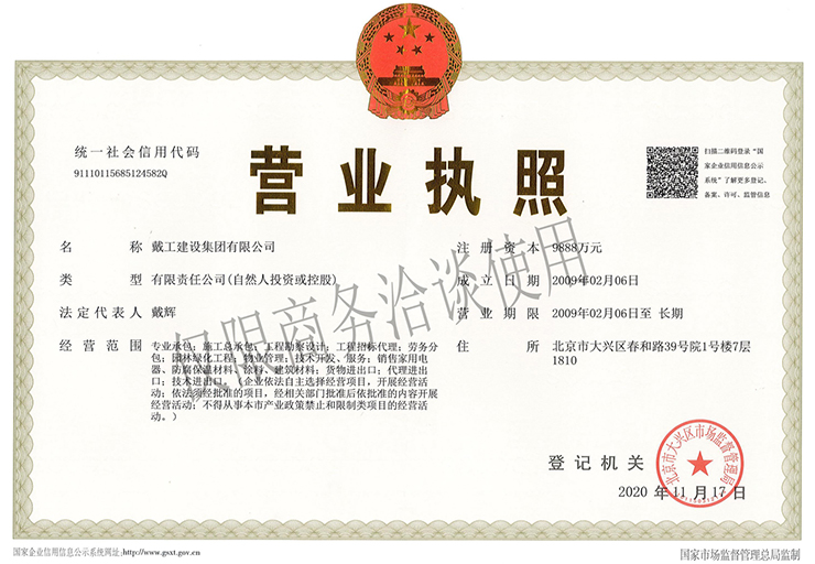 戴工建設(shè)集團(tuán)有限公司,創(chuàng)建于2009年,注冊資本9888萬元人民幣。公司位于北京市大興區(qū)。具有建委頒發(fā)的建筑裝飾裝修專業(yè)壹級,防水保溫工程專業(yè)壹級,建筑幕墻專業(yè)貳級,消防設(shè)施專業(yè)貳級,電子與智能化專業(yè)貳級,特種工程(結(jié)構(gòu)補(bǔ)強(qiáng))專業(yè)不分等級,建筑機(jī)電安裝專業(yè)貳級,環(huán)保工程專業(yè)貳級,鋼結(jié)構(gòu)專業(yè)貳級,建筑工程總承包貳級,建筑裝飾工程設(shè)計(jì)專項(xiàng)甲級,展覽陳列工程設(shè)計(jì)與施工壹級,展覽展示工程壹級...更多>>