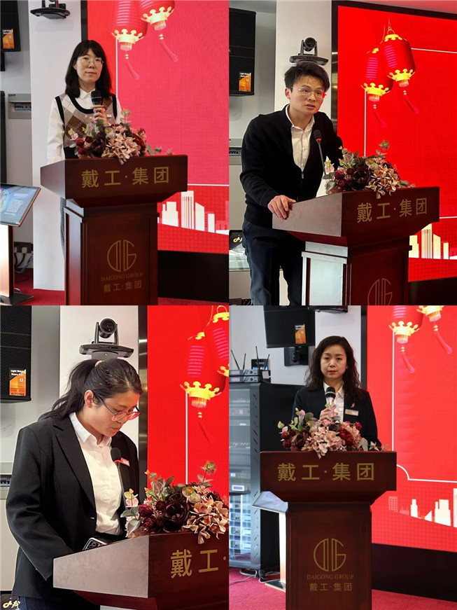 集團副總裁兼總經理周麗在會上表示:回顧2023年,對戴工集團來說,是不平凡的一年,歷經三年疫情的考驗,集團穩步發展。這一年集團在面臨諸多的挑戰,受大環境影響,經濟形勢嚴峻、市場競爭異常激烈的情況下,在集團董事長的領導下以及各級負責人和全體員工的努力下,圍繞著企業年初制定的戰略目標,秉承“以質量求生存,以服務求發展”的經營理念,視困難為挑戰,化挑戰為機遇,在企業管理、品牌建設、經營業績等方面均收獲了喜人的成績和經驗。表示在2024年集團在企業管理方面、品牌建設方面以及經營業績方面將投入更大的支持,戴工人要堅定發展信念,增強憂患意識,在市場大局中找準定位和自身優勢,適應市場變化,迎難而上,奮力在高質量發展階段蹚出適合我們自己的新路線,在逆境中爭創佳績。在講話中總經理還下達了2024年戴工集團的年度總產值10億目標任務。在2024年,希望戴工人能保持對事業的熱情和追求卓越的精神,勇于創新,勇于擔當,不斷提升自身的工作技能和職業素養,為公司的發展貢獻自己的力量。同時,也希望大家能保持團結和合作的精神,支持公司的戰略部署與組織調整,共同打造一個更加美好的未來。在新的一年里能夠攜手共進,再創輝煌。最后總經理還在會上祝愿戴工的同事們以及業界合作伙伴們在龍年平安健康、事業蓬勃、幸福如意。