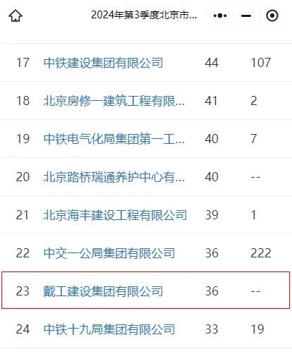 回顧上季度,戴工集團便以穩健的步伐,不斷積累實力、優化結構、提升競爭力,成功躋身北京市建筑施工企業中標數量第33位,這一成績的取得,為戴工集團在第三季度的進一步突破奠定了堅實基礎。