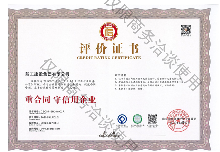 重合同守信用企業評價證書