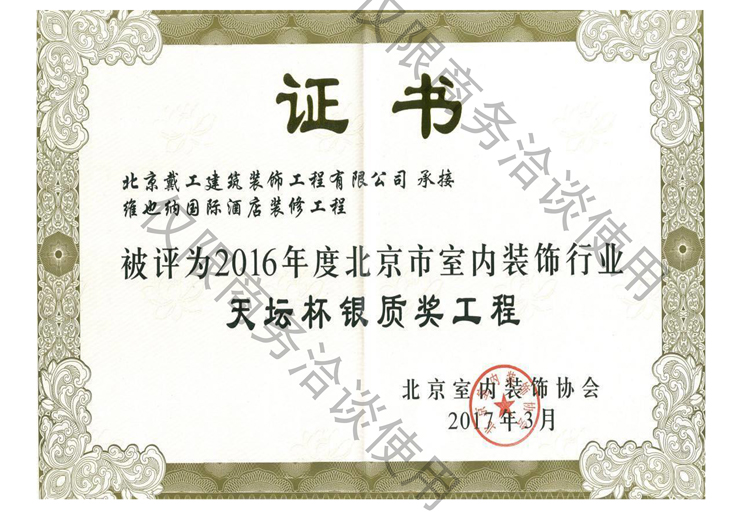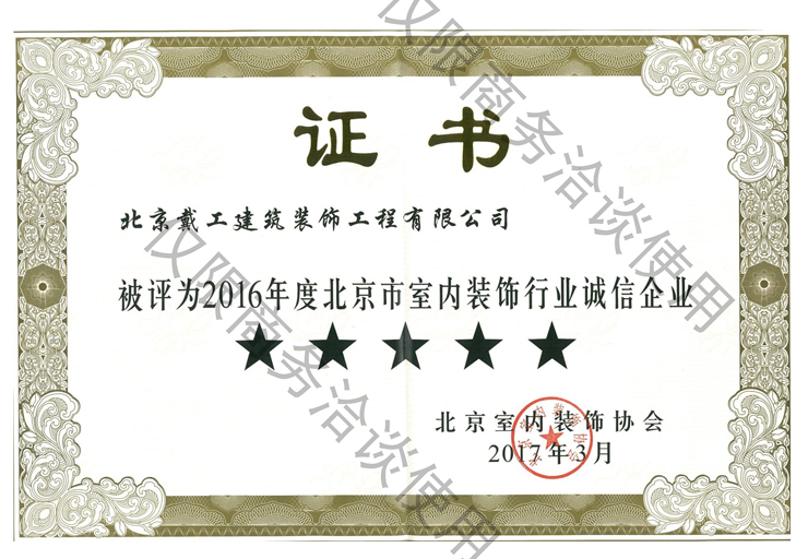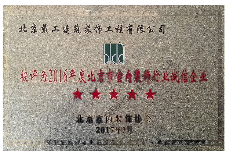 2016年度北京市室內裝飾行業誠信企業