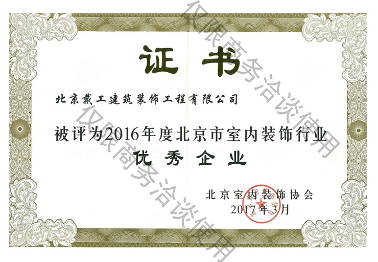 2016年度北京市室內裝飾行業優秀企業