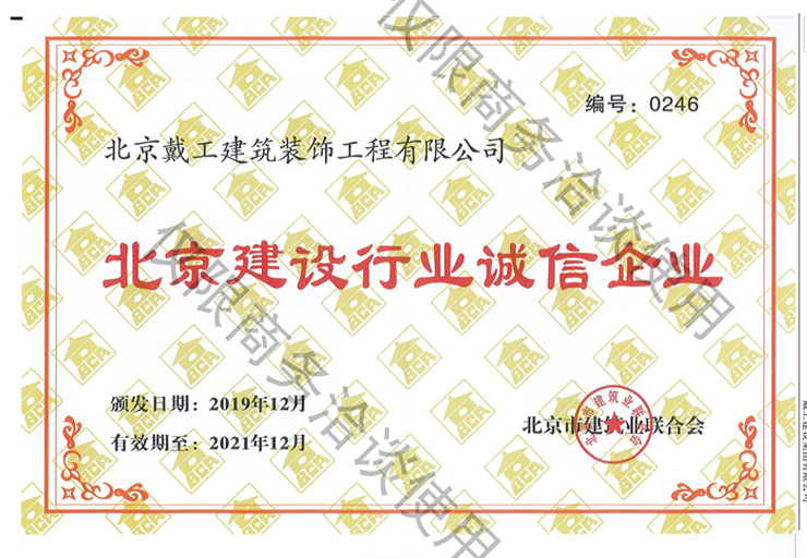 北京建設行業誠信企業